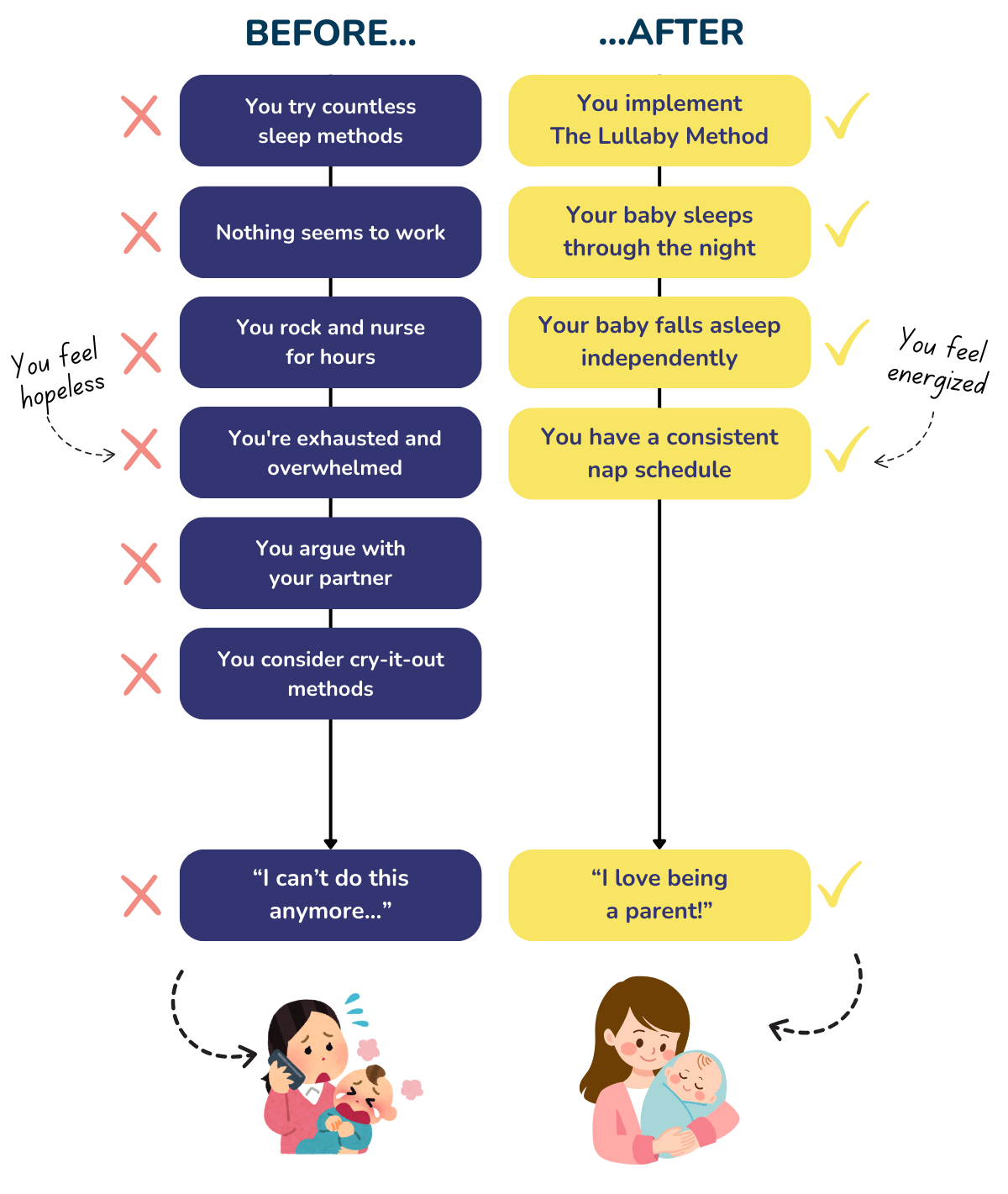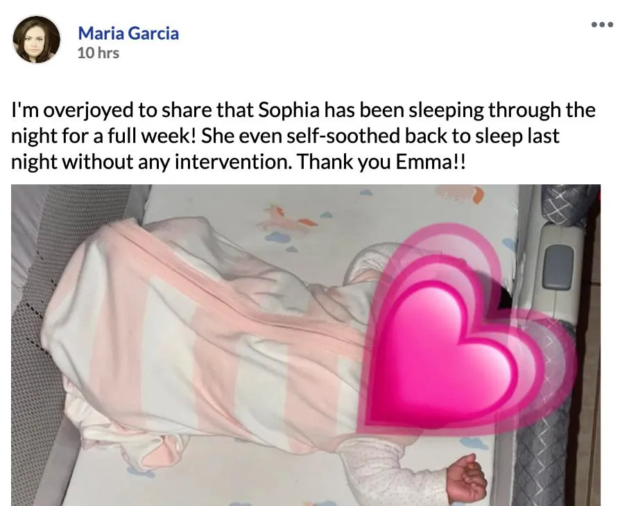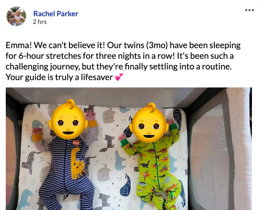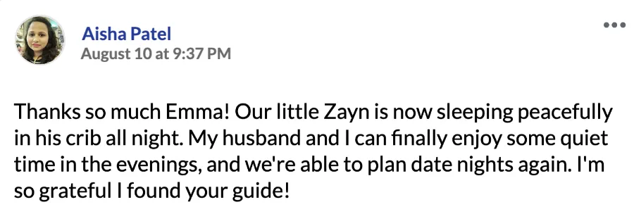 You'll stop feeling overwhelmed, exhausted, or like a failure as a parent. This is how I felt when I was struggling with my firstborn's sleep… But within days, you'll have the tools to help your baby thrive, and you'll feel confident and in control again.